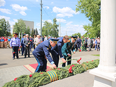Ведущие церемонии - заместитель директора городского дворца культуры Ирина Черникова и курсовой офицер Военно-воздушной академии лейтенант Александр Макаров - напомнили собравшимся о страшном утре 22 июня 1941 года, о 1418 днях и ночах, когда шли кровопролитные бои, о 27 миллионах советских граждан, погибших на фронтах, в немецком плену, умерших от голода и бомбёжек, в гетто и печах нацистских лагерей смерти, о 1710 разрушенных городах и поселках, 70 тыс. сел и деревень.