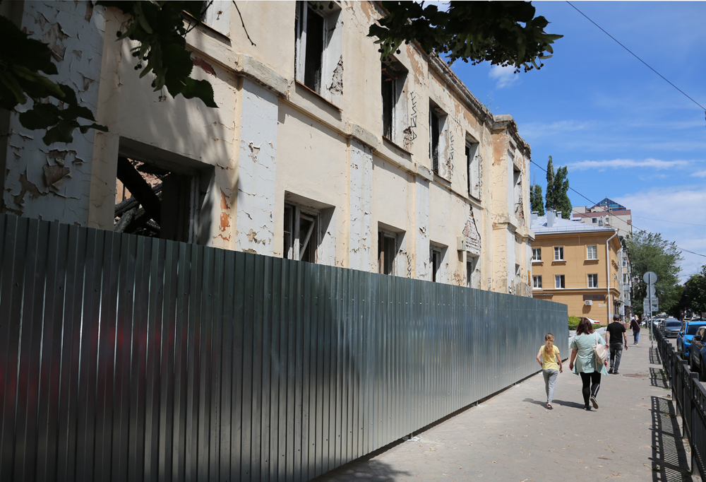 В настоящий момент завершён монтаж ограждения по периметру здания по улице Никитинской, 50в. Решение об установке забора было принято в связи с текущим состоянием объекта культурного наследия и согласовано с региональным управлением по охране ОКН. Сейчас доступ внутрь сооружения ограничен.