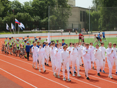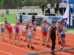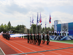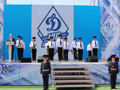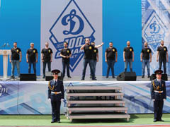 Началось торжество парадом: под гимн «Динамо» в исполнении ансамбля «Альянс» КЦ ГУ МВД России по Воронежской области по дорожке стадиона перед зрителями прошли коробки курсантов-флагоносцев ВИ МВД, за которыми следовали юные динамовцы с десятиметровым флагом общества и представители секций по видам спорта.