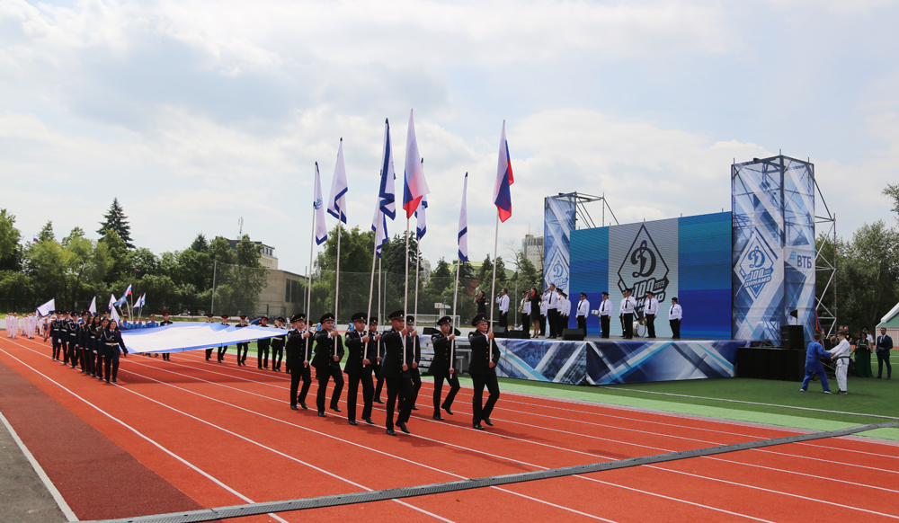 Началось торжество парадом: под гимн «Динамо» в исполнении ансамбля «Альянс» КЦ ГУ МВД России по Воронежской области по дорожке стадиона перед зрителями прошли коробки курсантов-флагоносцев ВИ МВД, за которыми следовали юные динамовцы с десятиметровым флагом общества и представители секций по видам спорта.