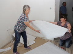 Жильцам дома предлагали на выбор несколько вариантов отделки – разные виды обоев, дверей и другое.– В пятом подъезде в срок, предусмотренный контрактом, завершился косметический ремонт – поклеили обои, уложили новую плитку в санузлах, перестелили напольные покрытия. Сейчас горожане получают обратно ключи и уже начинают возвращаться в свои квартиры. В шестом подъезде, где произошел взрыв, работ по понятным причинам было больше, и они тоже завершаются. Предчистовая отделка квартир выполнена, подрядчик приступил к последнему этапу. Темпы соответствуют плановым, с 1 августа и жители шестого подъезда смогут вернуться домой, – пояснил Вадим Кстенин.