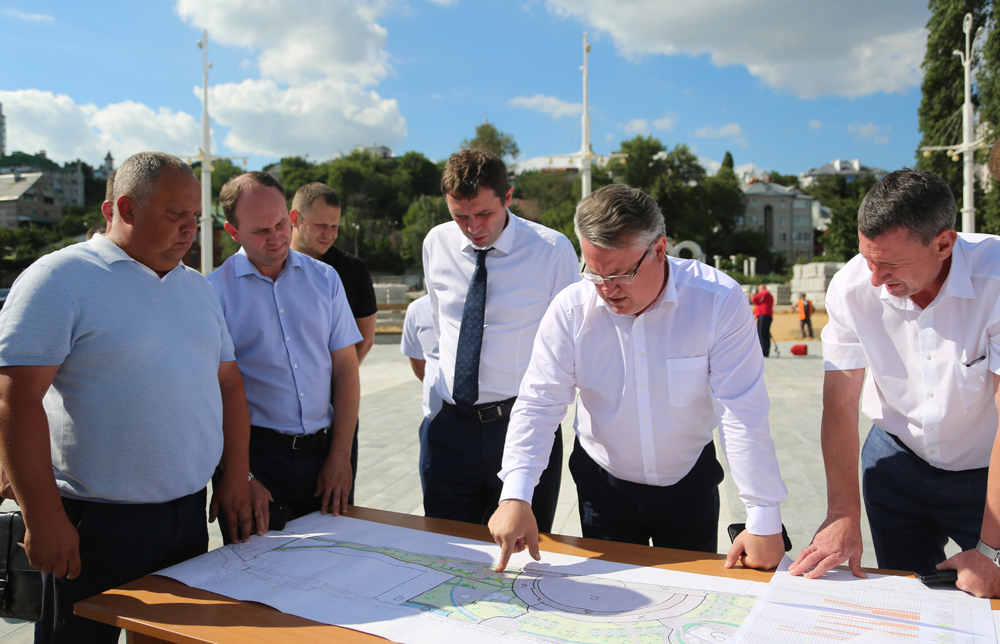 Глава Воронежа Вадим Кстенин проверил ход благоустройства Петровской набережной