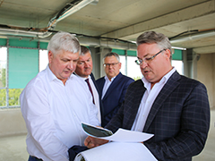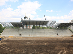 Губернатор Александр Гусев проверил ход строительства стадиона СК «Факел» 15 августа. Александр Гусев акцентировал внимание на нескольких вопросах.Одним из них стала готовность стадиона. Как сообщили Губернатору, подрядчик уже приступил к земляным работам по устройству поля. Строители выполнили бетонирование колонн, стен и перекрытия на трибунах. На западной, южной и северной трибунах почти завершен монтаж навесов. На западной трибуне сейчас ведется монтаж вентиляции, сетей ВиК и электроснабжения, идет установка окон и витражей.