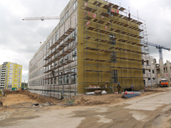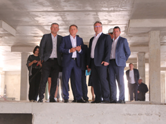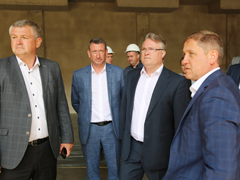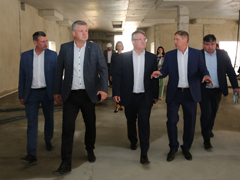 Оценить темпы ее взведения и обсудить перспективы благоустройства территории учреждения образования вместе с мэром приехали и.о. заместителей главы администрации по градостроительству и социальной политике Дмитрий Гладких и Любовь Кулакова, и.о. руководителя управления строительной политики Евгений Шишкин, руководитель управы Советского района Олег Копытин, генеральный директор подрядной организации АО «СЗ «ДСК» Андрей Соболев и т.д.Надо отметить, что школа на Домостроителей – уникальный для города объект по нескольким причинам. Одна из них: это первое учреждение в городе, которое строится «под ключ», т.е. за все этапы – разработку документации, возведение и за оснащение отвечает один подрядчик.