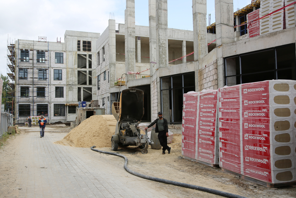 Оценить темпы ее взведения и обсудить перспективы благоустройства территории учреждения образования вместе с мэром приехали и.о. заместителей главы администрации по градостроительству и социальной политике Дмитрий Гладких и Любовь Кулакова, и.о. руководителя управления строительной политики Евгений Шишкин, руководитель управы Советского района Олег Копытин, генеральный директор подрядной организации АО «СЗ «ДСК» Андрей Соболев и т.д.Надо отметить, что школа на Домостроителей – уникальный для города объект по нескольким причинам. Одна из них: это первое учреждение в городе, которое строится «под ключ», т.е. за все этапы – разработку документации, возведение и за оснащение отвечает один подрядчик.