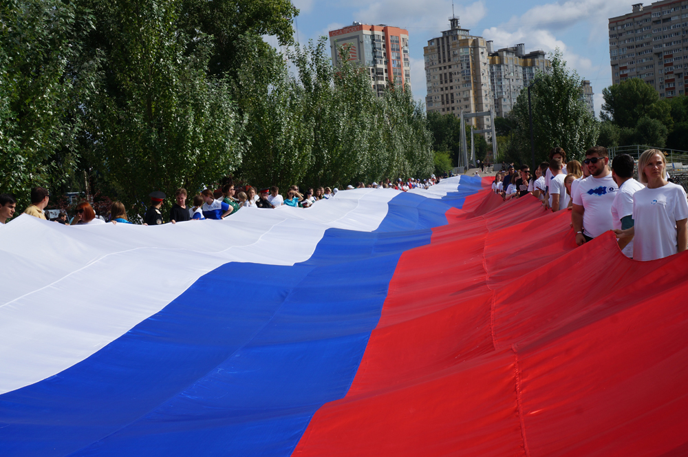 22 августа 2023 года в Воронеже прошли мероприятия, посвященные празднованию Дня Государственного флага Российской Федерации. Ранним утром на Чернавской дамбе более сотни молодых ребят – учащиеся школ совместно с волонтерами и юнармейцами, кадетами и активистами под звуки гимна растянули 100-метровый российский флаг.