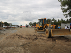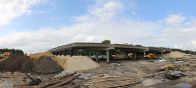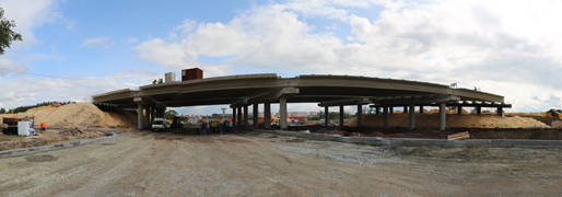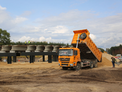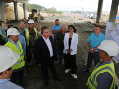 Активно продолжается строительство новой развязки на пересечении Минской-Остужева. Ежедневно здесь трудятся несколько бригад рабочих и около четырех десятков единиц техники, параллельно выполняя различные виды работ. В частности, ведется устройство (и переустройство) многочисленных коммуникаций, организация съездов с развязки и подъездов к ней, пешеходной инфраструктуры, а также возведение путепровода здесь, которое началось раньше срока, благодаря применению временных схем проезда («турбокольца» и «большого» кольца). Оксана Ивановна сообщила, что готовность самого путепровода через улицу Остужева к улице Минской, который станет частью развязки в рамках одного из этапов строительства, составляет уже более 50 процентов. Возведены все пролетные строения, на них ведутся бетонные работы, устраивается насыпь для организации съездов с сооружения. В то же время под путепроводом выполняется разработка грунта, а на уже подготовленных участках – начинается устройство многочисленных слоев дорожной одежды.