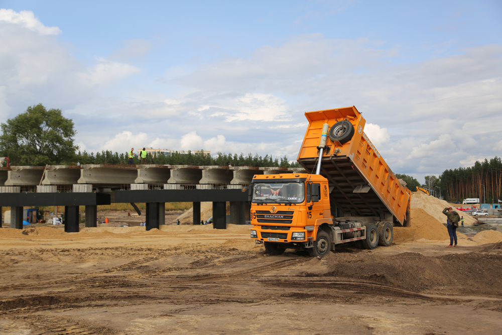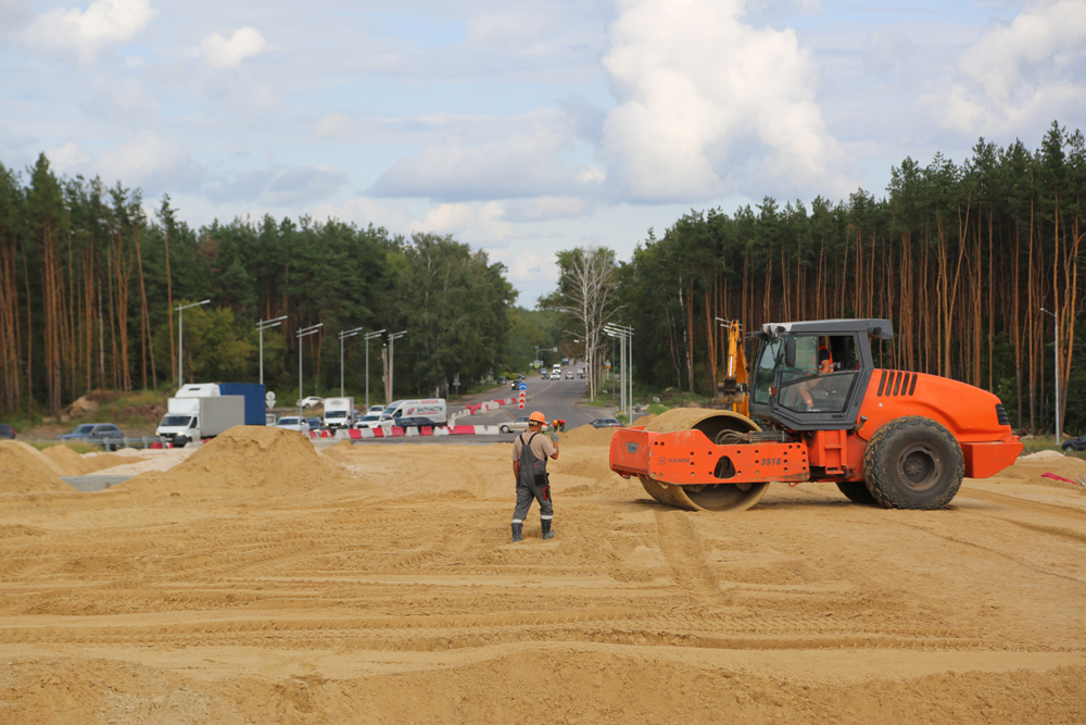 Активно продолжается строительство новой развязки на пересечении Минской-Остужева. Ежедневно здесь трудятся несколько бригад рабочих и около четырех десятков единиц техники, параллельно выполняя различные виды работ. В частности, ведется устройство (и переустройство) многочисленных коммуникаций, организация съездов с развязки и подъездов к ней, пешеходной инфраструктуры, а также возведение путепровода здесь, которое началось раньше срока, благодаря применению временных схем проезда («турбокольца» и «большого» кольца). Оксана Ивановна сообщила, что готовность самого путепровода через улицу Остужева к улице Минской, который станет частью развязки в рамках одного из этапов строительства, составляет уже более 50 процентов. Возведены все пролетные строения, на них ведутся бетонные работы, устраивается насыпь для организации съездов с сооружения. В то же время под путепроводом выполняется разработка грунта, а на уже подготовленных участках – начинается устройство многочисленных слоев дорожной одежды.