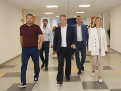 В ходе визита мэр осмотрел учебные кабинеты, лаборатории для проведения уроков химии, биологии и физики, концертный зал, спортивные залы и т.д.