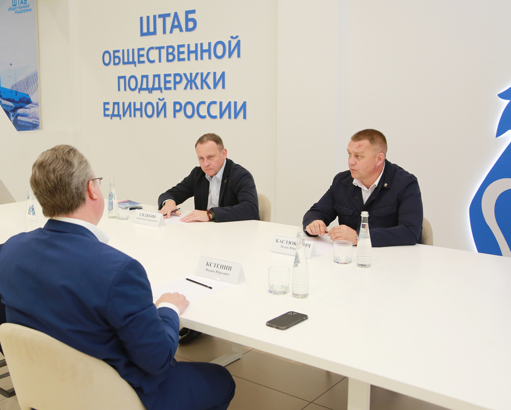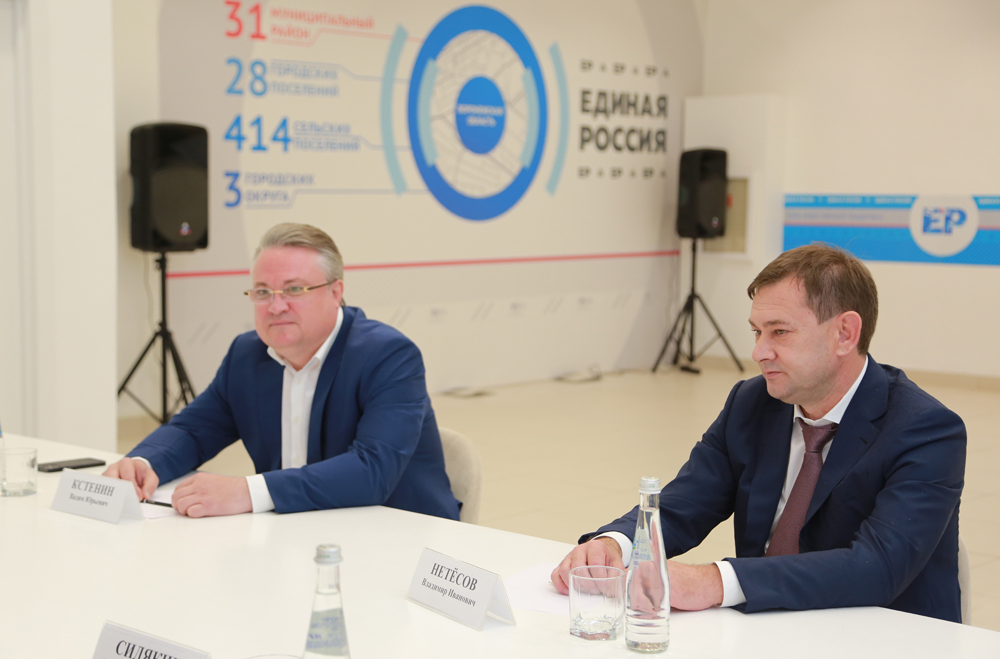 Глава Воронежа Вадим Кстенин в штабе общественной поддержки "Единой России" встретился с руководителем Центрального исполнительного комитета партии Александром Сидякиным и сенатором Федерального Собрания России Игорем Кастюкевичем.Участников встречи в новом статусе представил друг другу спикер Воронежской областной Думы, секретарь Воронежского регионального отделения "Единой России" Владимир Нетесов.
