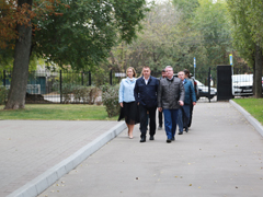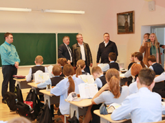 Экскурсия по школе, которую для гостей провел ее директор Алексей Фактор, началась у открытого в прошлом году монумента – стоящего перед школой самолета И-16, на котором летал героически погибший в Великую Отечественную войну лётчик Алексей Небольсин.