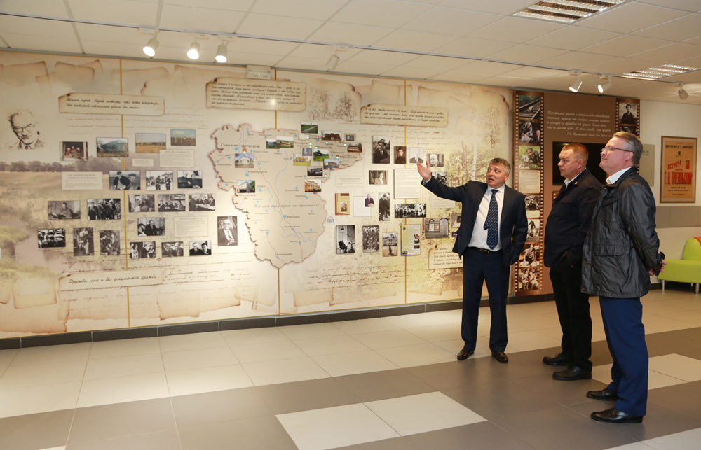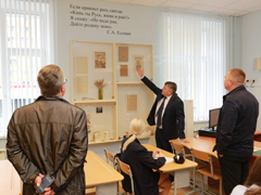 Кстати, еще одна изюминка школы – активная научная и поисковая работа, которую ведут сами школьники. Одна из них, посвященная погибшим в боях за Воронеж летчикам, даже была опубликована в виде книге, экземпляры которой директор 102 школы подарил Игорю Кастюкевичу и Вадиму Кстенину.Дальше гости осмотрели некоторые из 12 музеев. Первой из них стала экспозиция, посвященная обороне Воронежа.