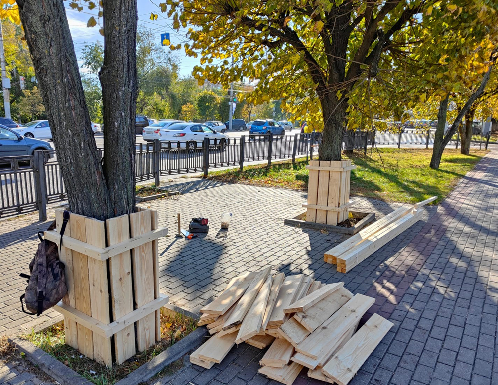 Работы по ограждению деревьев в настоящий момент ведутся на Московском проспекте вблизи автовокзала, от ул.Варейкиса до проспекта Труда, на Рабочем проспекте, на пересечении Московского проспекта с проспектом Труда, на ул. Хользунова вблизи Коминтерновского мемориального кладбища, а также на пересечении ул. Хользунова и Шишкова.