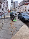 Кроме этого, в ежедневном режиме ведется уборка проезжей части улиц и тротуаров. С помощью спецтехники идет уборка пескосмета, опавшей листвы и бытового мусора. Там, где не применима крупная техника, на помощь приходят средства малой механизации. В ежедневном режиме наводят порядок в общественных местах. Проводятся работы по текущему содержанию дорожного покрытия на улицах Брусилова и Димитрова.