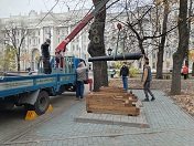 — Было принято решение сделать опоры из дуба. Он является древесиной твердой породы и прослужит дольше, — рассказал представитель подрядной организации.Остатки старой краски и ржавчина убраны с орудий пескоструйным методом. Потом они были покрашены.