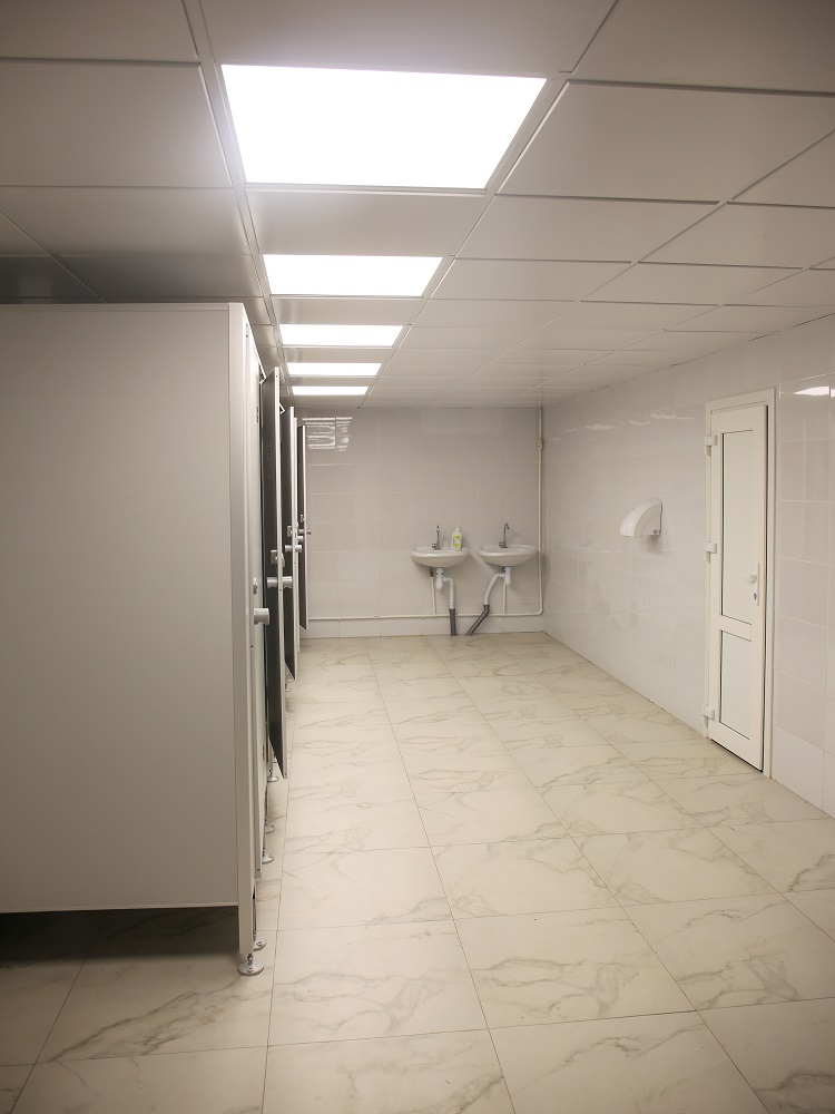 Смонтирована система безопасности и новый мощный ледогенератор. В «Юбилейный» приехали долгожданные панорамные окна – их сейчас монтируют на первом этаже. Кардинально преобразилась и значительная часть внутренних помещений. Несколько раздевалок, туалетов и душевых по соседству с уже завершенными помещениями пока еще в работе, поэтому уже с порога очевиден контраст между «было» и «стало». Как отмечал в своем телеграм-канале глава Воронежа Вадим Кстенин, который держит ремонтные работы в «Юбилейном» на личном контроле, от санузлов образца 1986 года там не осталось ничего: заменили все от электрики и систем водоснабжения и водоотведения, до сантехники и внутренней отделки.