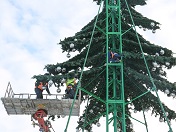 Сейчас специалисты ведут установку новогодней красавицы. Дерево было приобретено в прошлом году за 15 млн рублей. Сейчас на верхушке уже красуется традиционная звезда, которая шла в комплекте с елью. Будет обновлен и подиум, на котором она размещается.