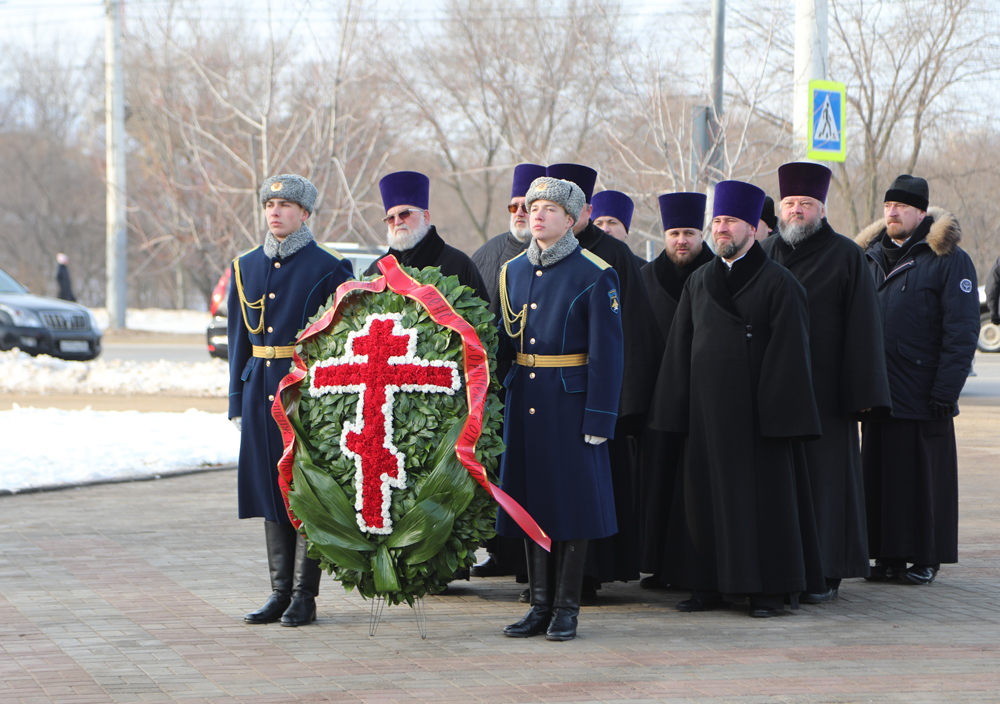 В завершение церемонии священнослужители Воронежской митрополии провели траурную панихиду, военный оркестр исполнил гимн Российской Федерации, а рота почетного караула Военно-воздушной академии имени профессора Н.Е. Жуковского и Ю.А Гагарина прошла торжественным маршем.