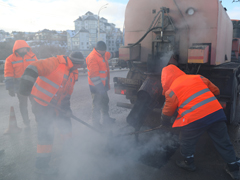 Традиционно с наступлением зимнего периода дорожные службы приступают к восстановлению целостности дорожного покрытия литым асфальтобетоном. Она нарушается, в первую очередь, из-за многократных перепадов температур воздуха (переходов через 0 градусов) под существующими современными транспортными нагрузками.
