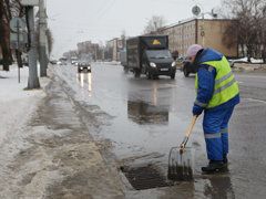 Ситуацию осложняет начавшийся вчерашней ночью и не прекращающийся до сих пор дождь. В течение сегодняшнего дня, специалисты комбинатов благоустройства проводят активную работу по расчистке ливнеприемников. Применяется, в том числе, и коммунальная техника, которая сдвигает тающую массу и шугу с решеток для того, чтобы они смогли быстрее принять скопившееся из-за активного таяния и осадков большое количество воды, а масса – быстрее растаять.