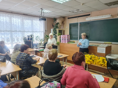 Состоялось и поздравление женского актива районного Совета ветеранов с Международным женским днем. Сотрудники отдела по работе с молодежью и организации культурно-досуговой и физкультурно-спортивной деятельности управы и председатель Совета Сергей Бочкин поблагодарили всех за большую работу по патриотическому воспитанию молодежи, сохранение и передачу следующим поколениям исконных русских традиций и вручили коллективу цветы, поздравительный адрес и подарок от имени руководителя управы.