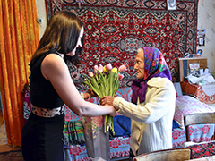 По поручению мэра Вадима Кстенина Клавдию Швырёву на дому поздравила заместитель руководителя управы района Евгения Демченко. Она вручила юбиляру поздравительный адрес, подарки и весенний букет от управы района.В дружеской беседе юбиляр рассказала гостям о своей долгой и интересной жизни; о трудностях в молодости, как ковали с подругами Победу в тылу, как радовались после войны мирной жизни.