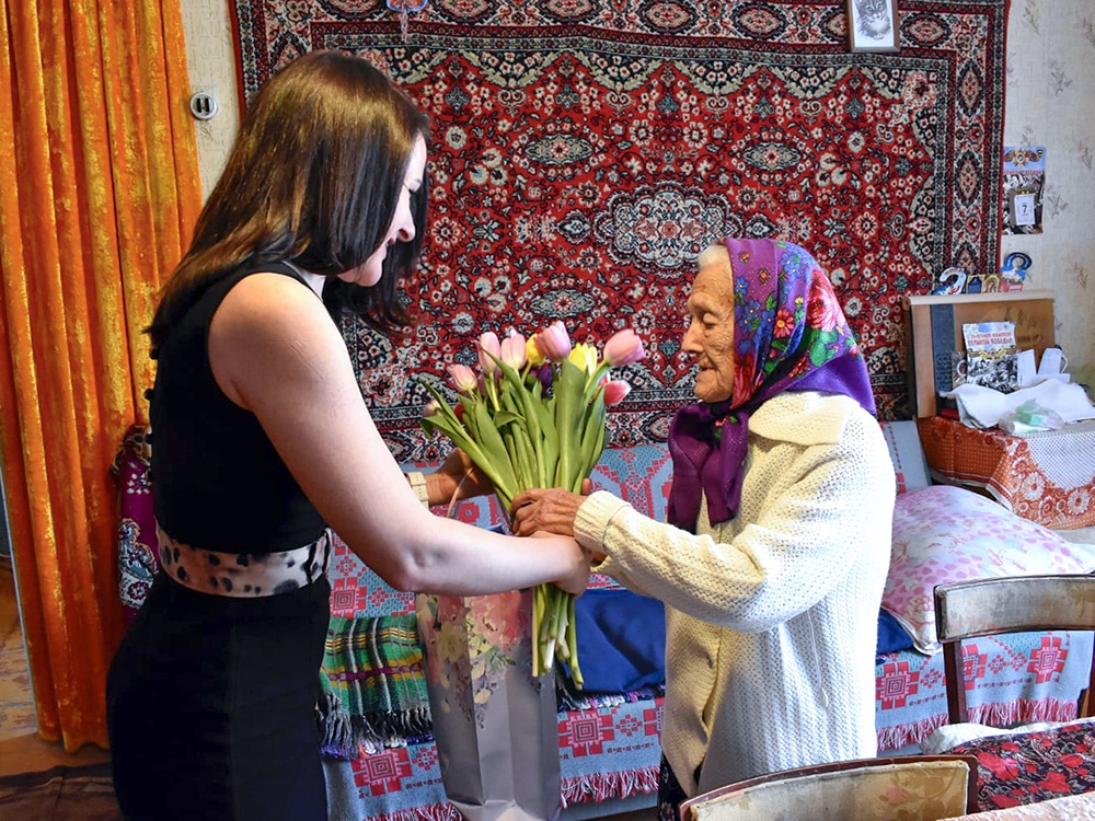 По поручению мэра Вадима Кстенина Клавдию Швырёву на дому поздравила заместитель руководителя управы района Евгения Демченко. Она вручила юбиляру поздравительный адрес, подарки и весенний букет от управы района.В дружеской беседе юбиляр рассказала гостям о своей долгой и интересной жизни; о трудностях в молодости, как ковали с подругами Победу в тылу, как радовались после войны мирной жизни.