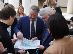 Мэр Вадим Кстенин поделился с министром просвещения России Сергеем Кравцовым планами развития соцузла у мегашколы