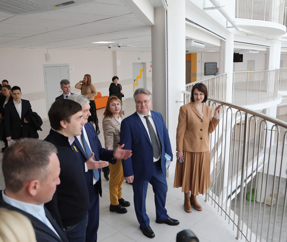 Вместе с министром оценить ее работу, пообщаться с учениками и педагогическим составом приехали Губернатор Александр Гусев и мэр Воронежа Вадим Кстенин, а также зампред Правительства региона Олег Мосолов.