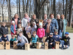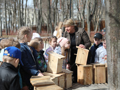 В мероприятии по развешиванию скворечников в парке приняли участие юные воспитанники и педагоги городского Дворца творчества детей и молодежи и детского сада №18.