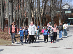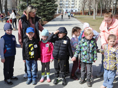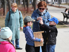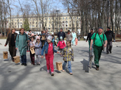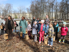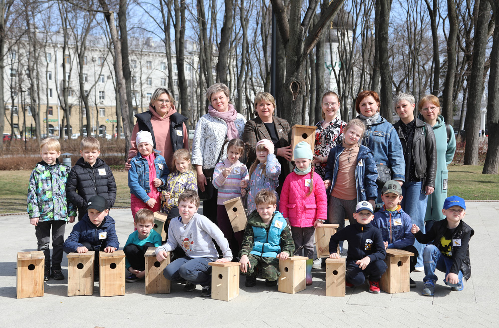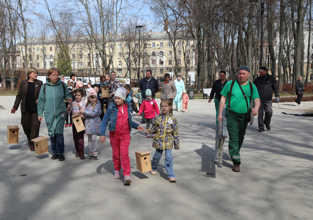 В мероприятии по развешиванию скворечников в парке приняли участие юные воспитанники и педагоги городского Дворца творчества детей и молодежи и детского сада №18.