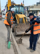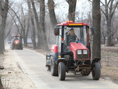 Кроме того, трудятся трактора со щетками, вычищающие, в том числе прилотковую часть дорог и тротуары, комбинированные дорожные машины, погрузчики и малая коммунальная техника.