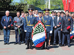 8 мая, в преддверии Дня Победы, в парке Патриотов прошла церемония возложения венков и цветов к Вечному огню, у братской могилы № 6.В церемониях возложения участвовали руководитель управы Левобережного района Вадим Башилов, представители управы района, депутаты областной и городской Дум, а также представители общественных и ветеранских организаций промышленных предприятий района, молодёжное объединение «Волонтеры Победы».