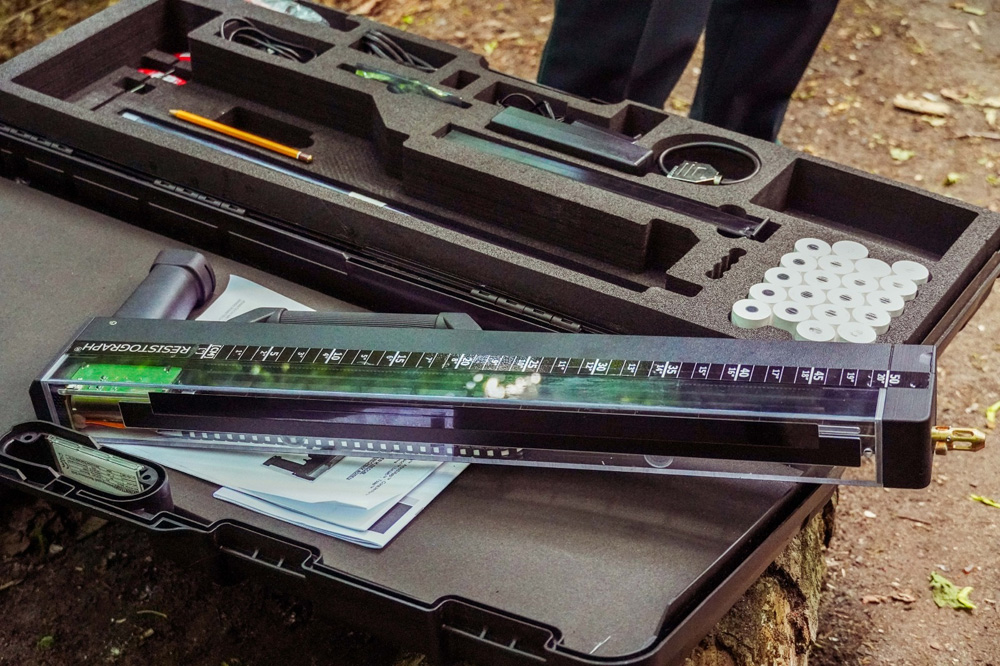 Резистограф приобрели по поручению главы города Вадима Кстенина. Мэр считает, что ни одно дерево в Воронеже не должно удаляться без полноценного обследования, если есть сомнения в его жизненных функциях.Этот прибор предназначен для грамотного обследования взрослых деревьев, который позволяет тонким сверлом всего лишь 1,5 мм пробурить ствол насквозь без ущерба для растения и по полученной резистограмме выявить, что находится внутри. На резистограмме (диаграмме) видно, как себя чувствует дерево, есть ли опасные гнили или дупла.