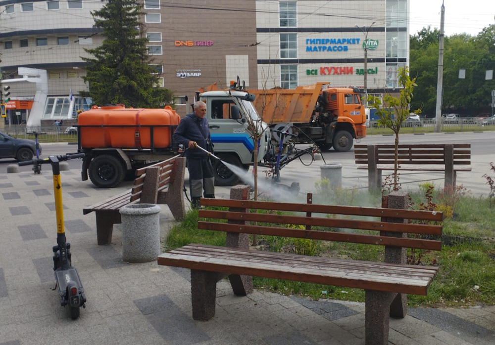 В Железнодорожном районе не останавливается работа по уходу за зелеными насаждениями. Полив молодых деревьев и кустарников – один из приоритетных видов работ.Этой весной комбинатом благоустройства высажено более 40 кленов и тополей в сквере «Футбольный» рядом со стадионом «Локомотив», планируется посадка берез и рябин в скверах «Совенок» и «Димитрова», а также высажено более 1000 кустов спиреи на бульваре «Живописный» в жилом комплексе «Лазурный» и в сквере «Футбольный».