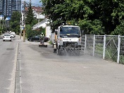 Поливомоечные машины, в свою очередь, проезжая по улицам района, смывают пыль с автодорог и тротуаров к прилотковой зоне для выполнения дальнейшей уборки работниками ручного труда, а также охлаждают асфальт в жаркую погоду.