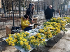Первый же уличный прилавок, на котором лежали букетики мимоз, выявили на площадке недалеко от дома по улице Переверткина, 28. Стоящий за ним мужчина по имени Юрий предъявил паспорт и сообщил, что работает «на хозяина».